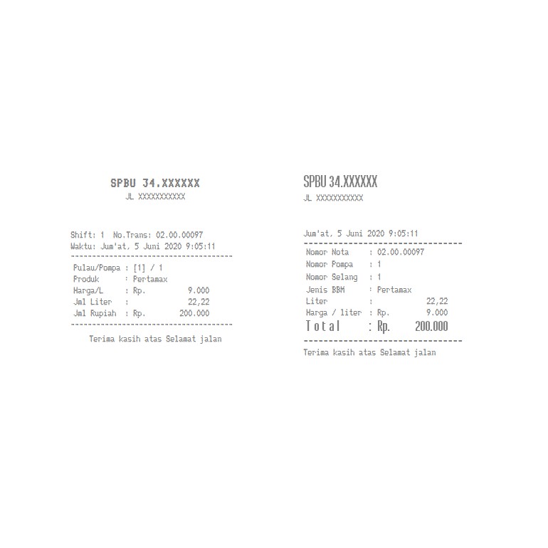 Thermal printer usb struk nota belanja mini market spbu. Unduh sebagai doc, pdf, txt atau baca online dari scribd. Gan, ada yg punya software buat cetak struk pom bensin gak? Daftar harga nota spbu terbaru juli 2021. Anonim 5 april 2014 21.35. Itu yg gak muncul kop di klik aja bro spbu.ini (bentuk notepad) cari tulisan kop=. Waxthey 6 maret 2014 00.56. Spbu 4452111 spbu 4452112 pertamina pertamina. Contoh nota / kwitansi / invoice / surat jalan / tanda terima / surat perintah kerja percetakan nota, kwitansi, invoice, surat jalan, slip setoran , bukti setoran, resep dokter di malang sebuah perusahan akan membutuhkan media pencatatan untuk merapikan laporan jumlah transaksi keuangan dan barang yang keluar masuk setiap harinya berupa. Detail contoh struk bensin pdf dapat kamu nikmati dengan cara klik link download dibawah dengan mudah tanpa iklan yang mengganggu. Free download struk spbu release 215a. Laporan akhir penelitian renewable energy grant competition energi bersih indonesia tahun 2016 mobile solar water pumping system. Dia seorang admin yang kerjanya notabane nyimpenin bon/kwitansi/struk dari seluru karyawan untuk dilakukan closing.
