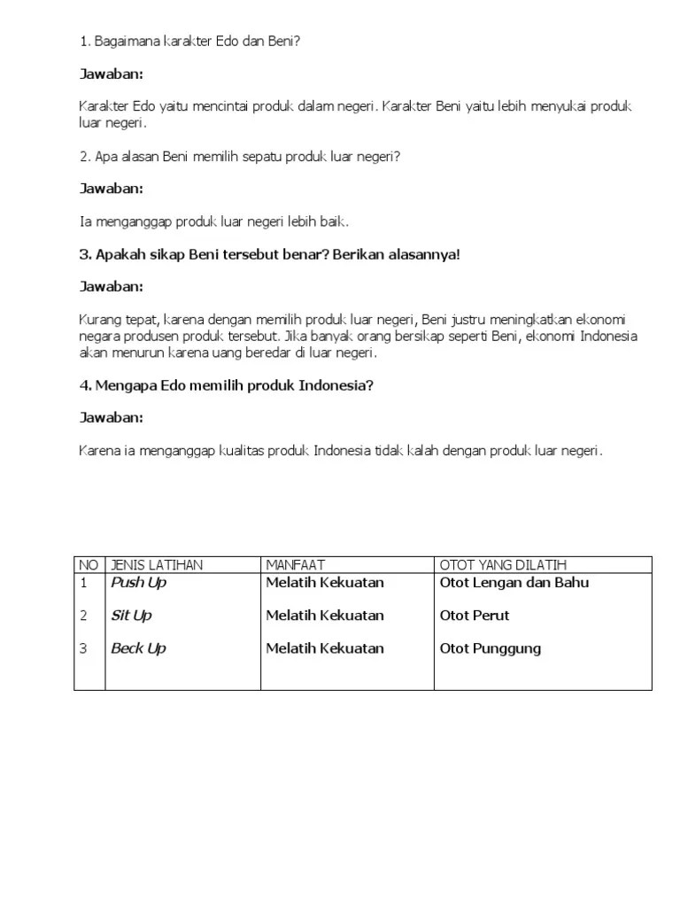 Karakter edo, mencintai produk indonesia. Bagaimana karakter edo dan beni? Karakter edo yaitu mencintai produk dalam negeri. Bagaimana karakter edo dan beni? Bagaimana pendapatmu tentang persahabatan udin, edo dan beni?