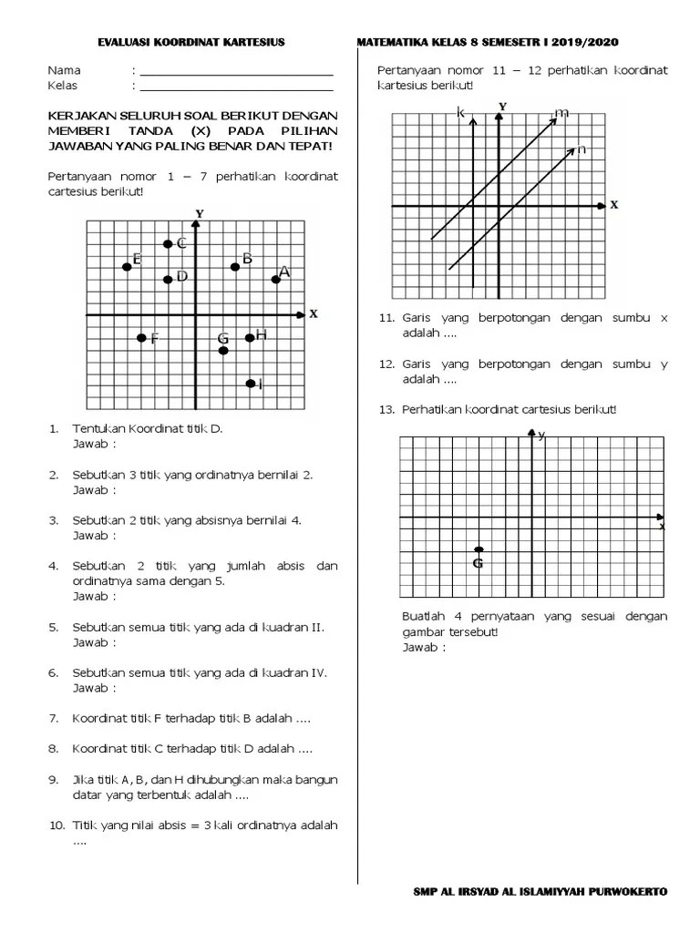 Soal Sistem Koordinat Kelas 8 / Soal Choice Beserta Jawaban Pada Materi Sistem Koordinat Kelas 8 Jawabanku Id : Pada buku pegangan siswa matematika kelas 8 semester 1 bab 2 tentang sistem koordinat terdapat materi dan soal latihan.. soal matematika kelas 6 sd bab sistem koordinat dan kunci. Bank soal kelas 8 smp k2013 tentang sistem koordinat soal pilihan ganda soal 1 perhatikan gambar di bawah ini analisis kesalahan dalam penyelesaian soal matematika berbasis timss materi dan lks matematika kelas 8 sistem koordinat mgmp matematika. Bimbel athifiyah club probolinggo pin 5288dcf4 hp. Contoh soal koordinat cartesius beserta jawabannya sebuah segitiga tak beraturan dengan koordinat k1 1 l4 2 m3 4 n26 dan o 2 3 berapa luas segitiga tersebut. Makalah materi soal bahasa indonesia kelas 8 diterangkan mulai dari pelajaran sd, smp, atau sma min, mts, ma dan smk lengkap dengan contoh contoh latihan uas dalam mata pelajaran bahasa indonesia.